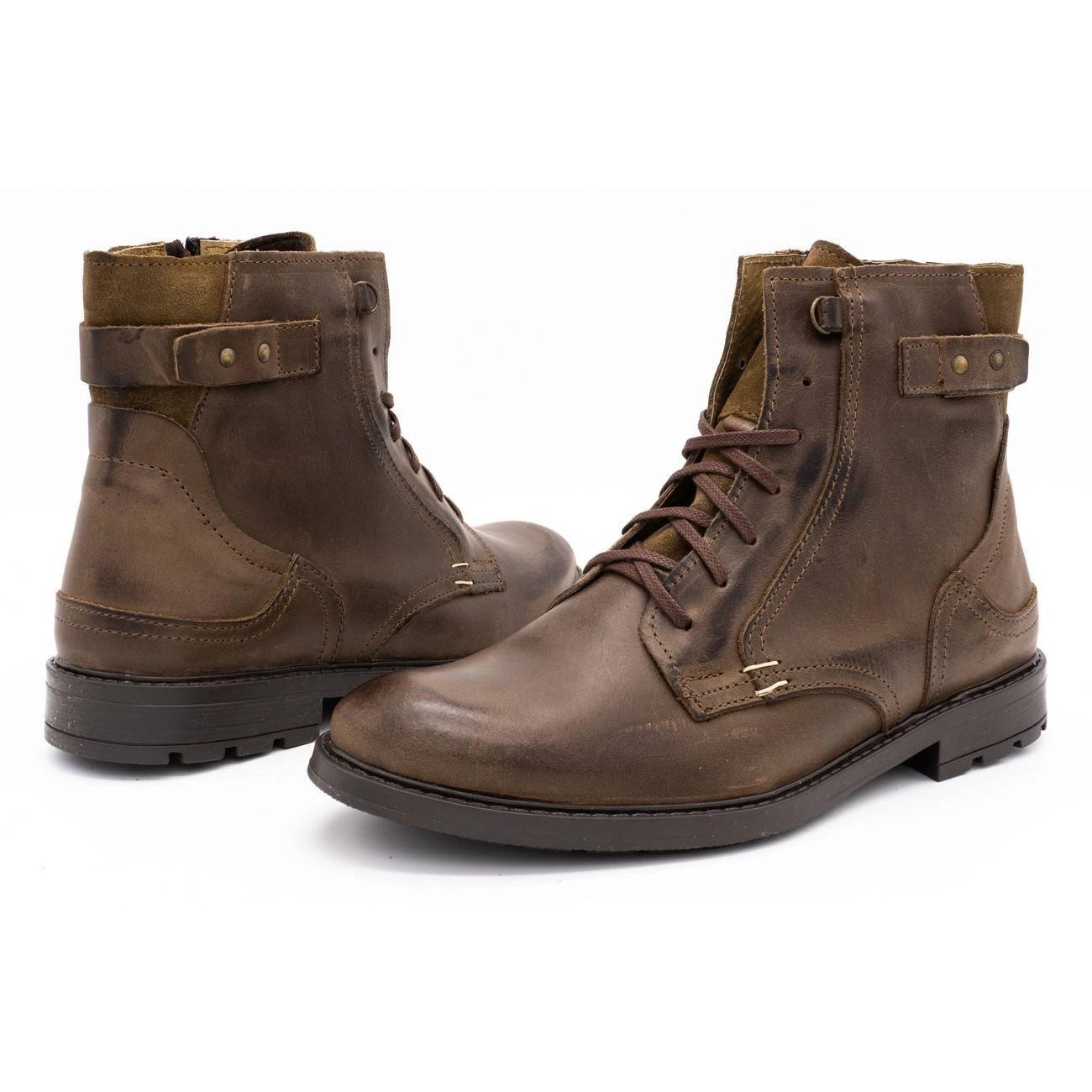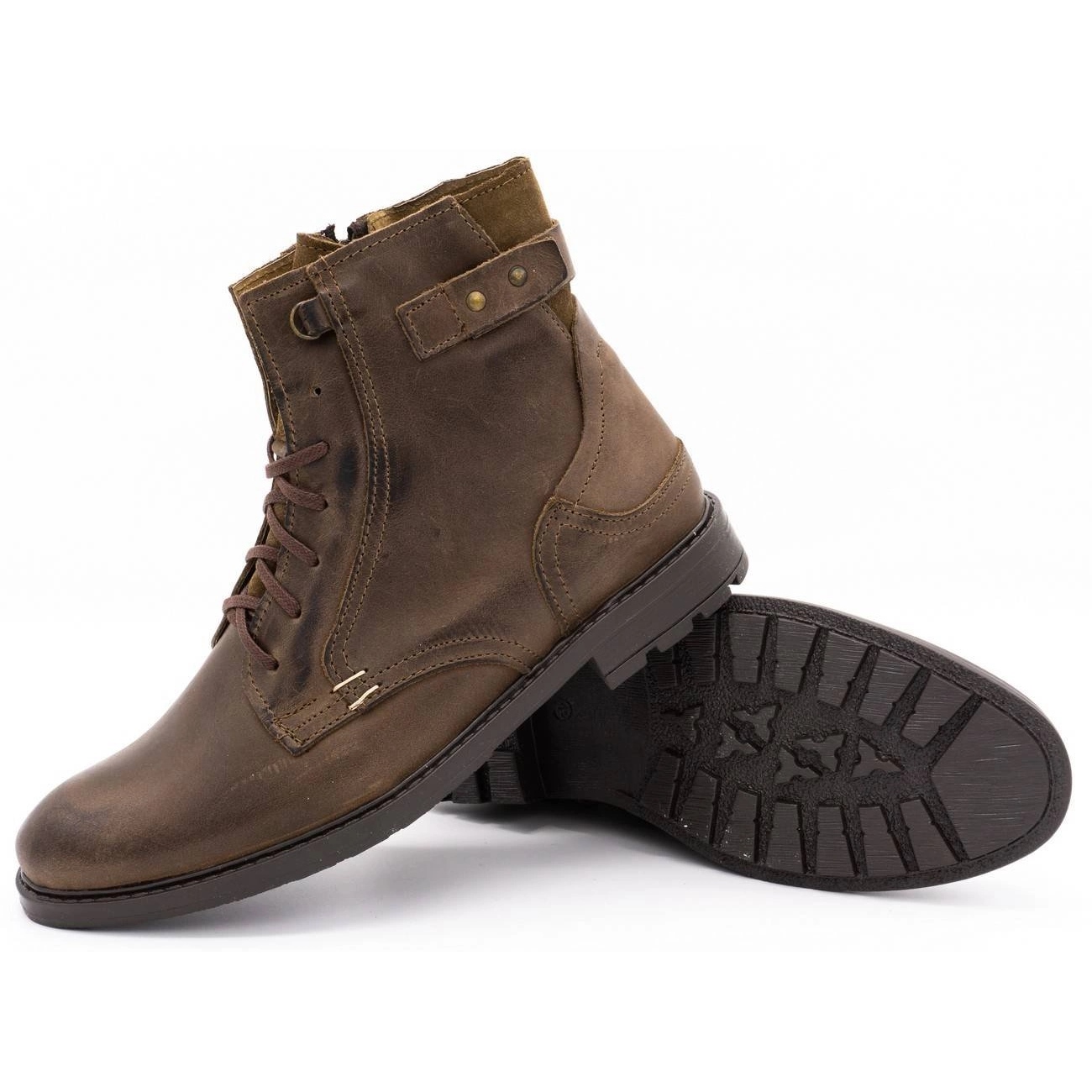 Las botas de nieve KOMODO 856 marrones son un calzado de hombre, perfecto para la temporada otoño-invierno. Los zapatos son de color marrón nieve, que resaltarán perfectamente cualquier estilo informal. Se distinguen por el estilo de las botas, tienen cordones y tienen un cierre de cremallera adicional. Están fabricados en piel natural, lo que garantiza su alta calidad y durabilidad. La suela de los zapatos es sintética y el material interior es una manta para zapatos. La altura total de los zapatos es de 17 cm, lo que proporciona protección contra el frío y la humedad. El calzado está aislado, lo que garantiza calidez incluso en días helados. Los zapatos presentados son un producto de la marca KOMODO, un conocido fabricante de calzado que garantiza solidez y comodidad de uso. Los zapatos son nuevos, se venden en el embalaje original del fabricante. El producto pertenece a la colección KeeShoes y su número de catálogo es BM105016. Para mantener su bella apariencia, el fabricante recomienda utilizar pastas para cuero flor y aceite de visón.