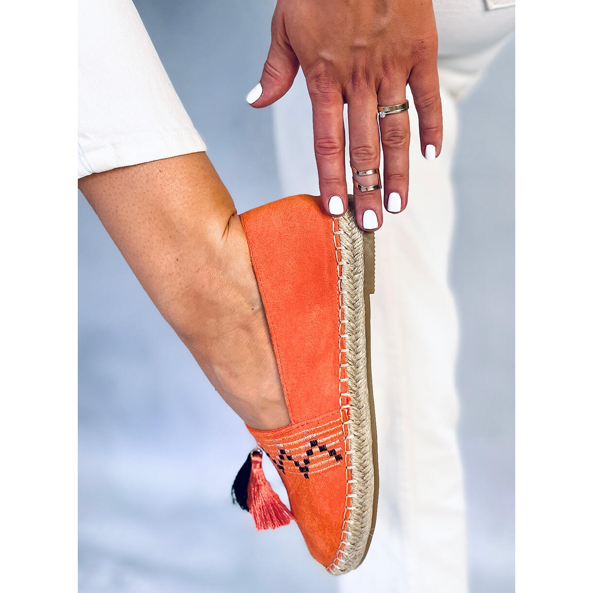 Detalles: Alpargatas boho con flecos Birna Orange naranja