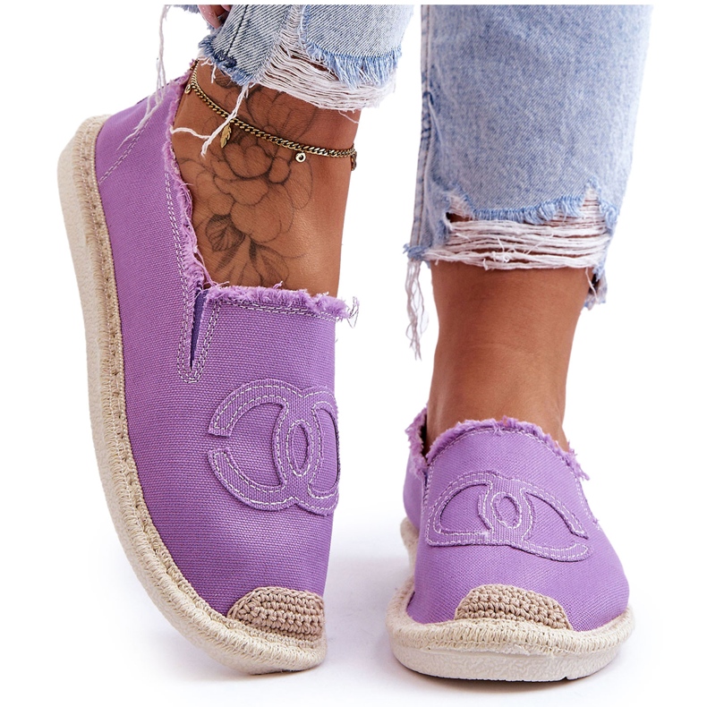 La línea de alpargatas, que incluye los modelos morados, está disponible en una amplia gama de colores, para que puedas encontrar fácilmente un par que combine perfectamente con tu guardarropa. Desde el negro clásico, pasando por el rosa vivo, hasta este tono único de púrpura, cada color ha sido refinado para enfatizar el estilo individual de quien lo usa.