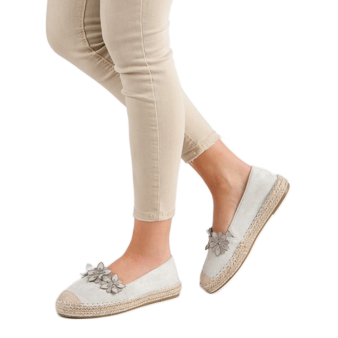 Las alpargatas con flores en un tono gris son la elección perfecta para las mujeres que quieren aportar un encanto único y feminidad a su estilo. Confeccionados en ante ecológico, estos zapatos combinan un diseño moderno con respeto al medio ambiente. Bellamente decorados con flores cuidadosamente elaboradas, hacen que cada peinado sea fresco y ligero.