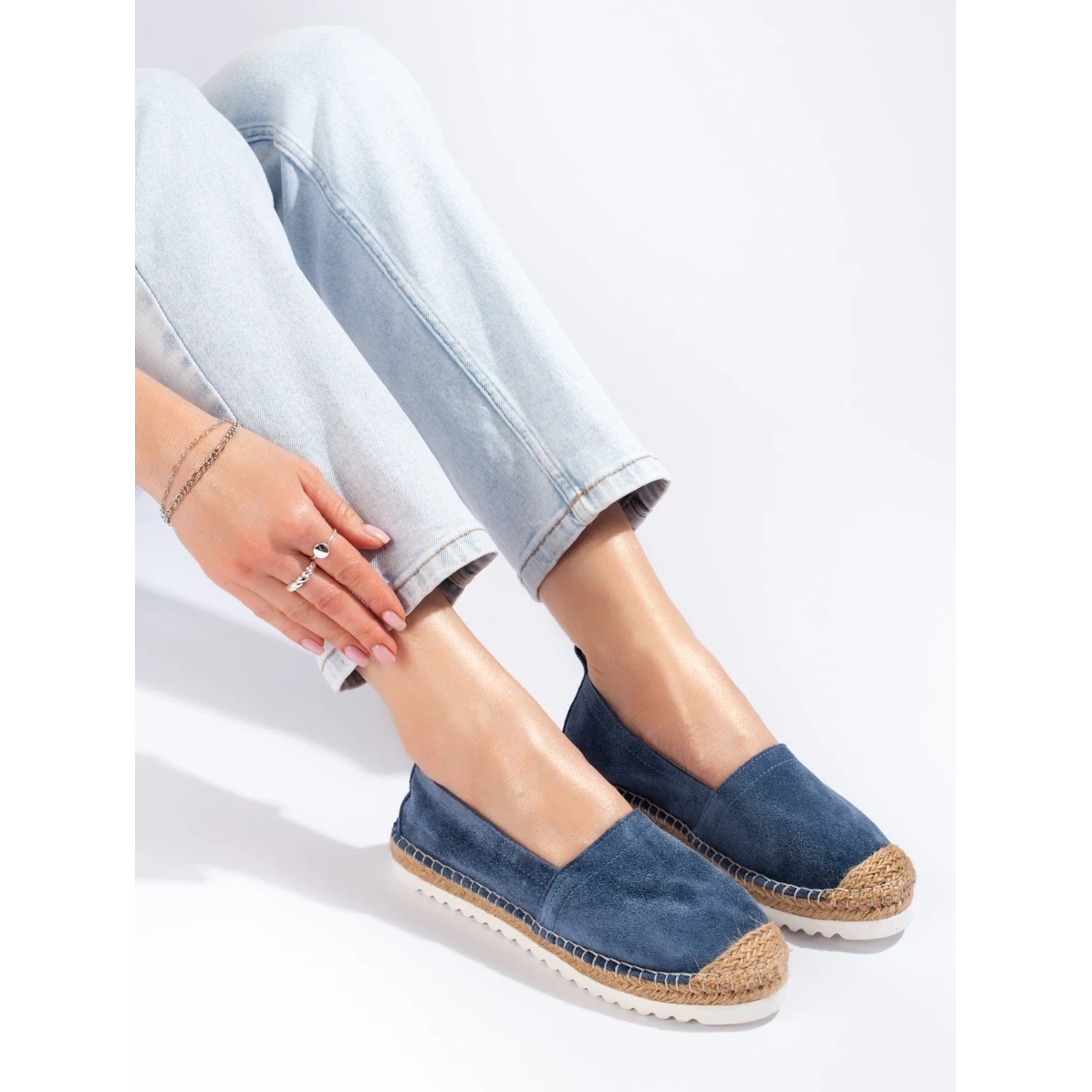 Detalles: T.Sokolski Alpargatas De Piel En La Plataforma azul marino