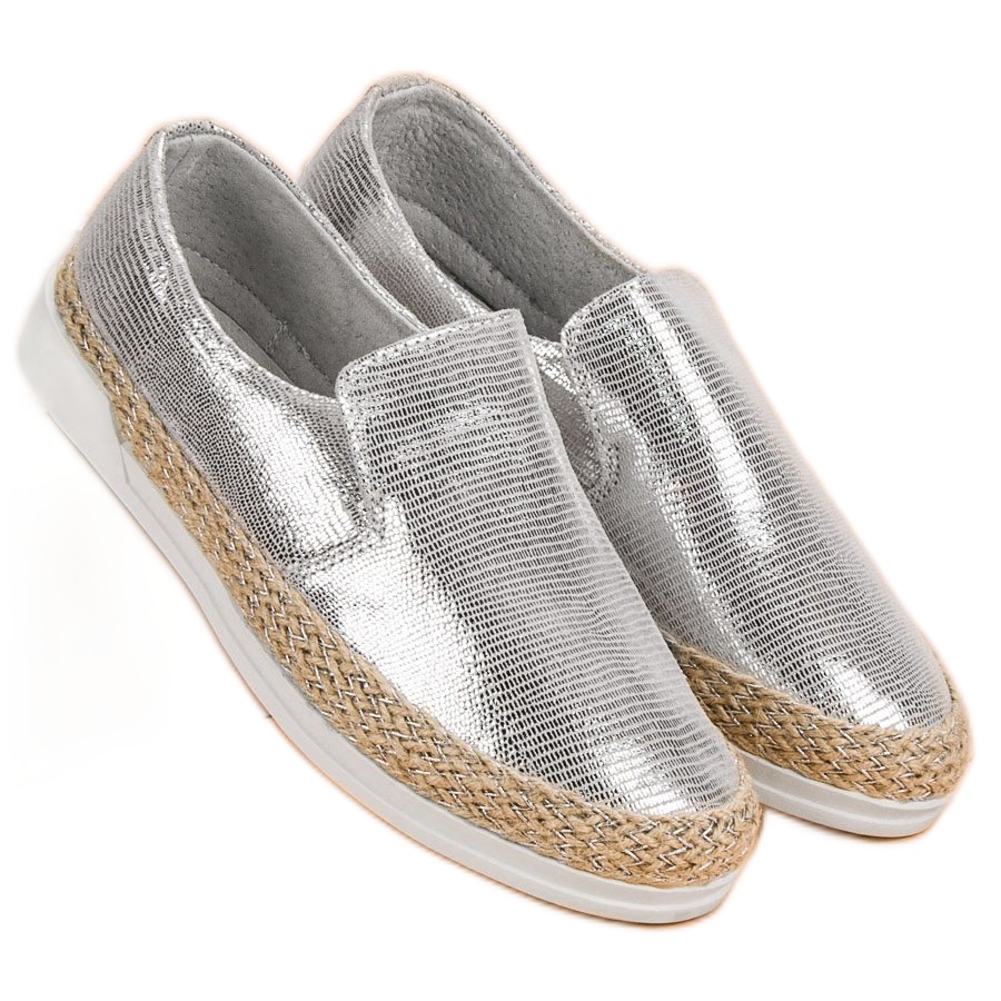 Detalles: Filippo Alpargatas de piel plateadas gris