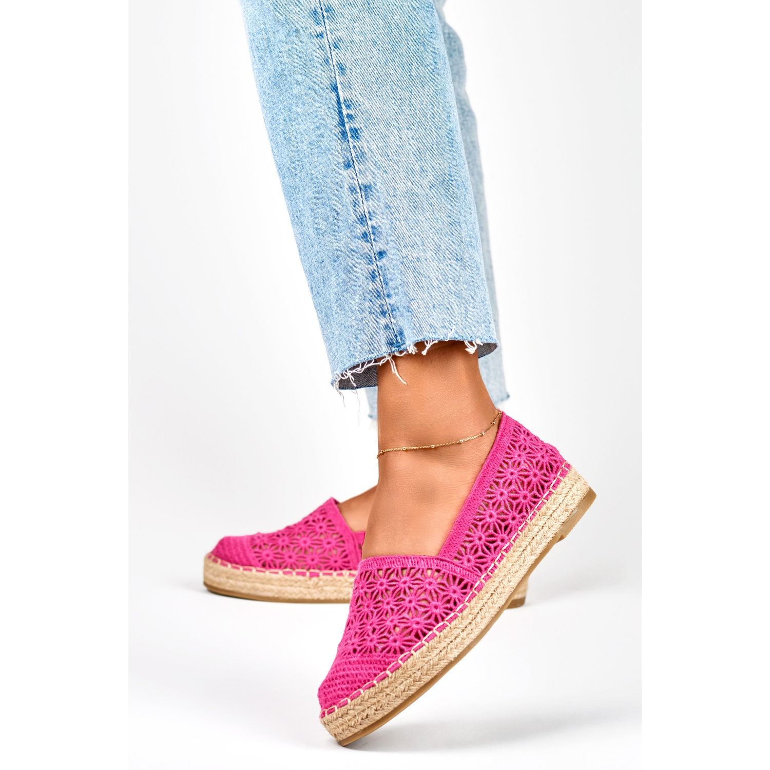 Detalles: Alpargatas mujer encaje rosa