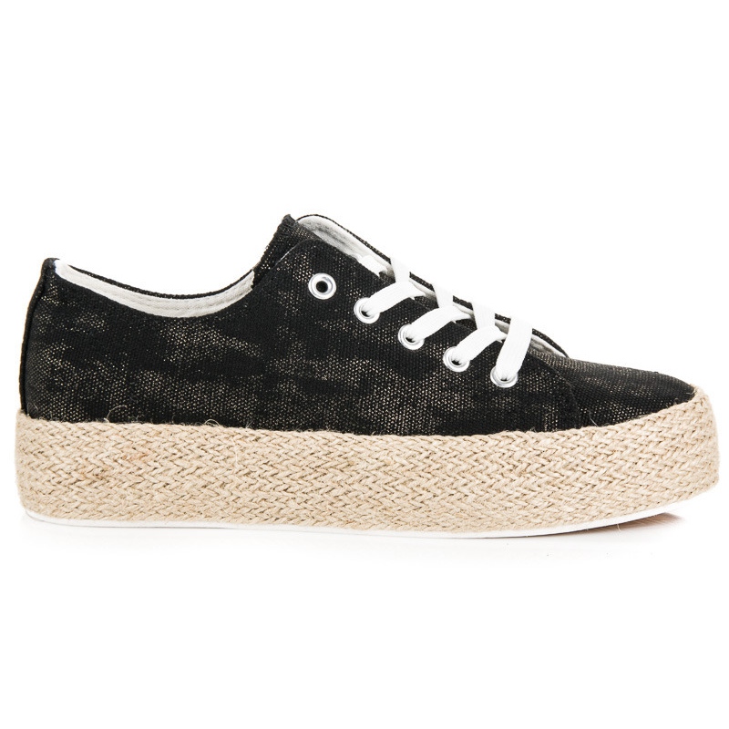 Ya sea que uses jeans, pantalones cortos o un vestido, estas alpargatas negras serán el complemento perfecto para tu guardarropa. El cierre de cordones permite un ajuste individual y la suela de goma con banda de rodadura garantiza estabilidad y tracción en diversas superficies.