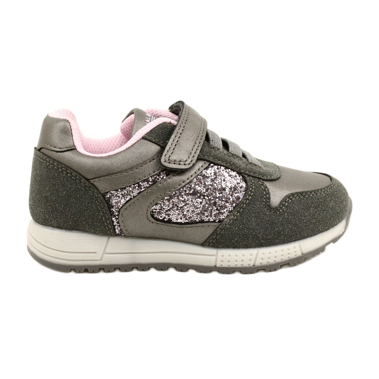 American Club ES40 Sports Sports Sports: calzado elegante, cómodo y duradero para niñas. Una parte superior de grises con elementos de cuero ecológico combina elegancia universal con un acento moderno y femenino en forma de un delicado interior rosa. El diseño interesante ciertamente atraerá a un pequeño cliente.