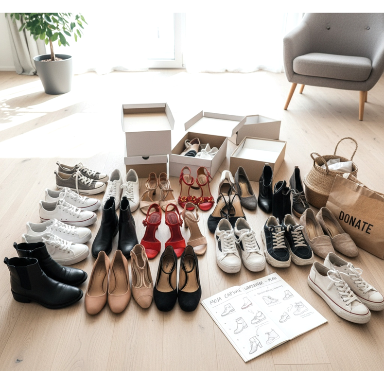 La teoría es una cosa, pero ¿cómo pasar prácticamente al sistema de armario cápsula en los zapatos? Aquí tienes un plan de acción probado que te ayudará a crear la colección minimalista perfecta.