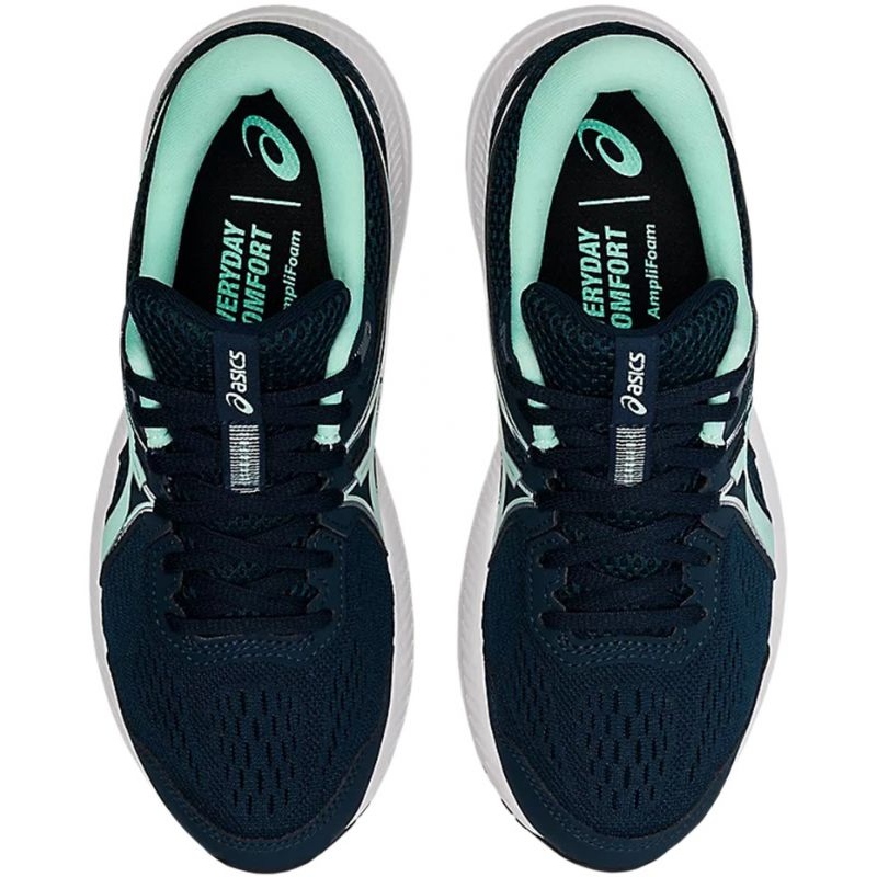 Las zapatillas Asics Gel Contend 7 W 1012A911 407 en color azul marino y menta son una excelente opción para las mujeres que buscan comodidad y eficiencia durante el entrenamiento. Gracias a sus soluciones innovadoras, te permiten correr sobre diversas superficies y su diseño proporciona un soporte óptimo para el pie.