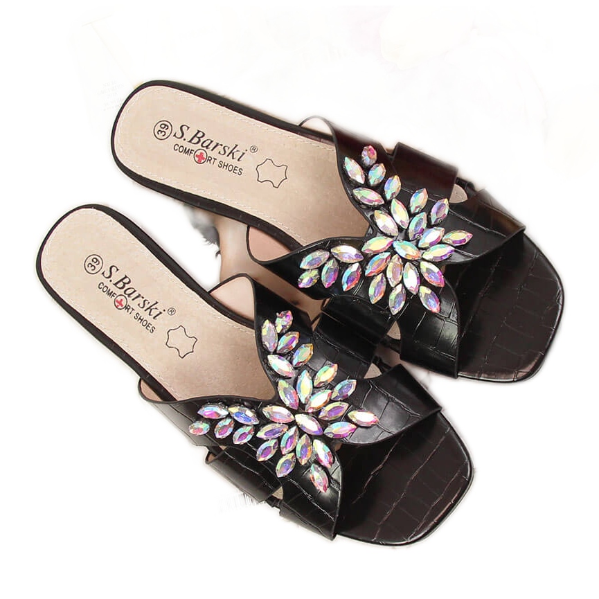 Las chanclas de mujer negras con pedrería de S.Barski son la elección perfecta para las mujeres que quieren combinar elegancia con comodidad diaria. Estas elegantes chanclas negras están decoradas con pedrería, lo que les da un carácter único y las hace perfectas tanto para el día a día como para las salidas de verano.