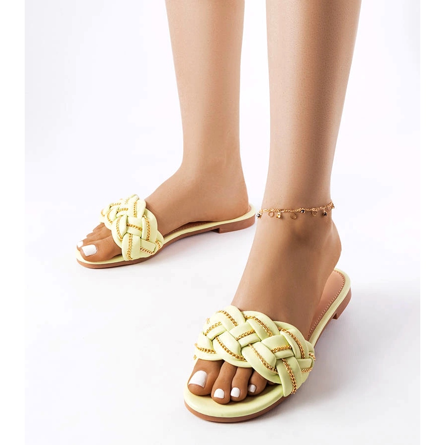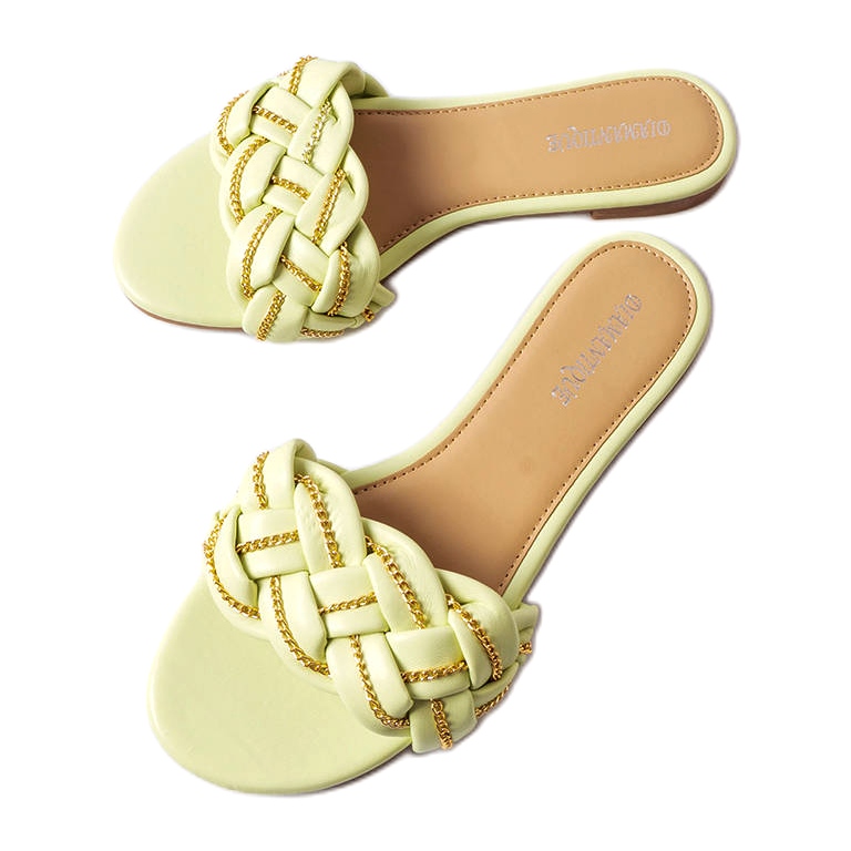 Correra: chanclas verdes, elegantes que debes tener este verano. Su característica superior trenzada con una cadena sutil le da al estilo un estofado de moda y femenino y las mezclas verdes universales perfectamente con vestidos de verano, juegos de linaza o pantalones cortos de mezclilla.