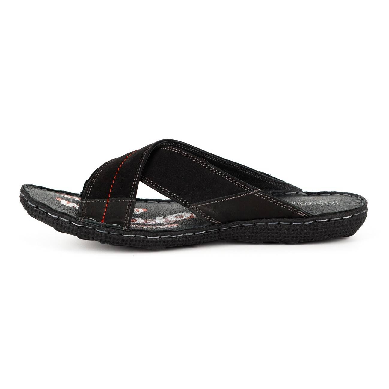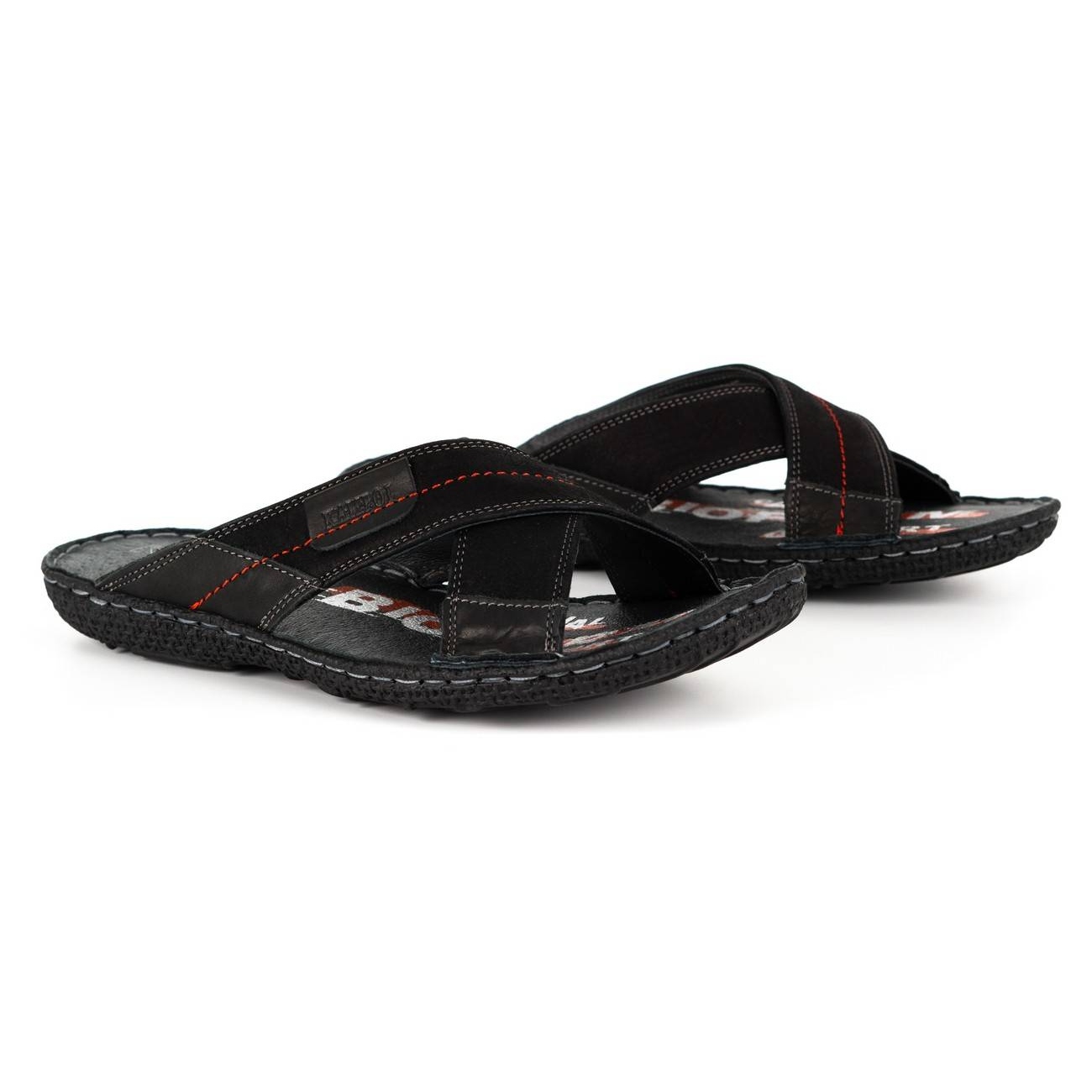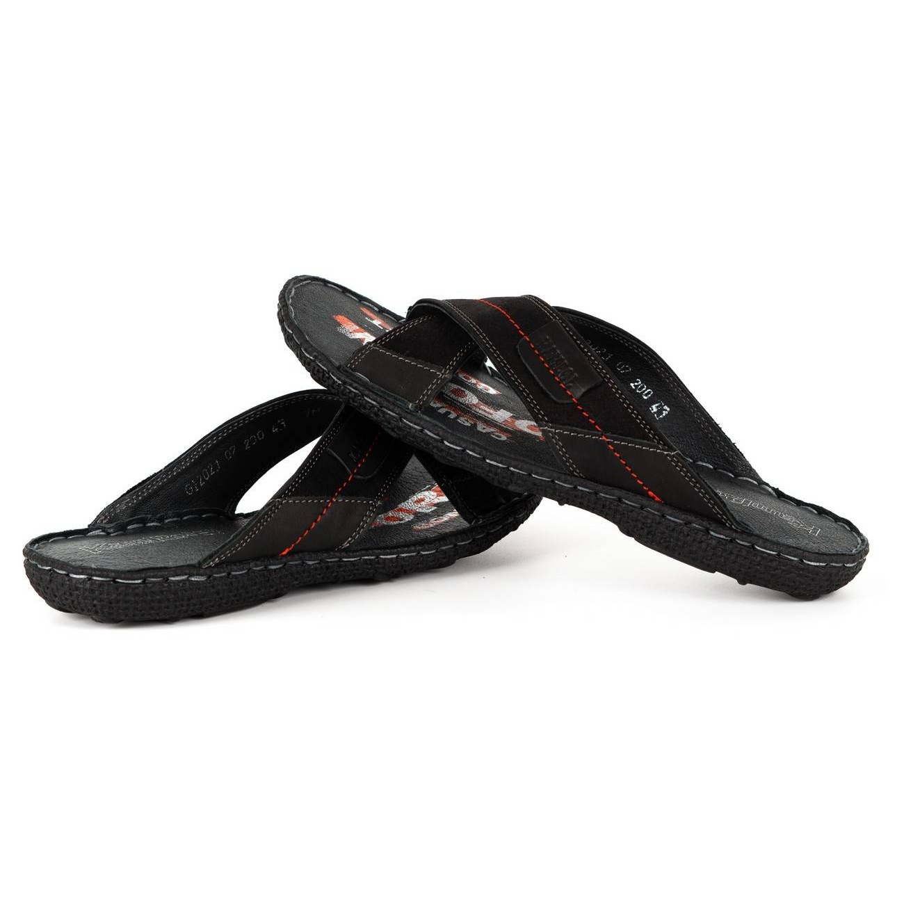 La colección "Fashionable Shoes", teniendo en cuenta las últimas tendencias, en el caso de las chanclas de piel para hombre 200/3, se centra en el minimalismo, que siempre está de moda y se adapta a muchos estilos. El color negro puro hace que las chanclas sean universales y se pueden combinar fácilmente con ropa de diferentes colores y estilos.