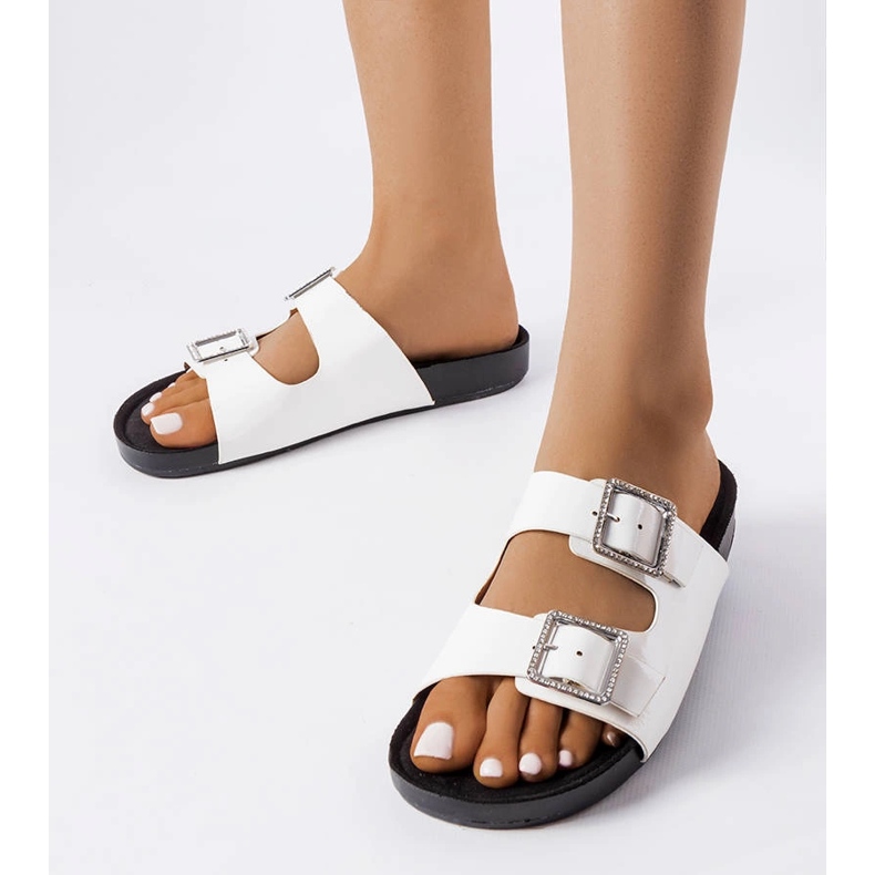 Detalles: Babuchas lacadas en blanco con hebillas Norcross