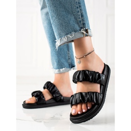 La suela fabricada en plástico, de 3 cm de altura, proporciona una adecuada amortiguación al caminar y un buen agarre gracias a la pisada. Las chanclas están disponibles en un elegante color negro, lo que las hace combinar perfectamente con varios estilos.