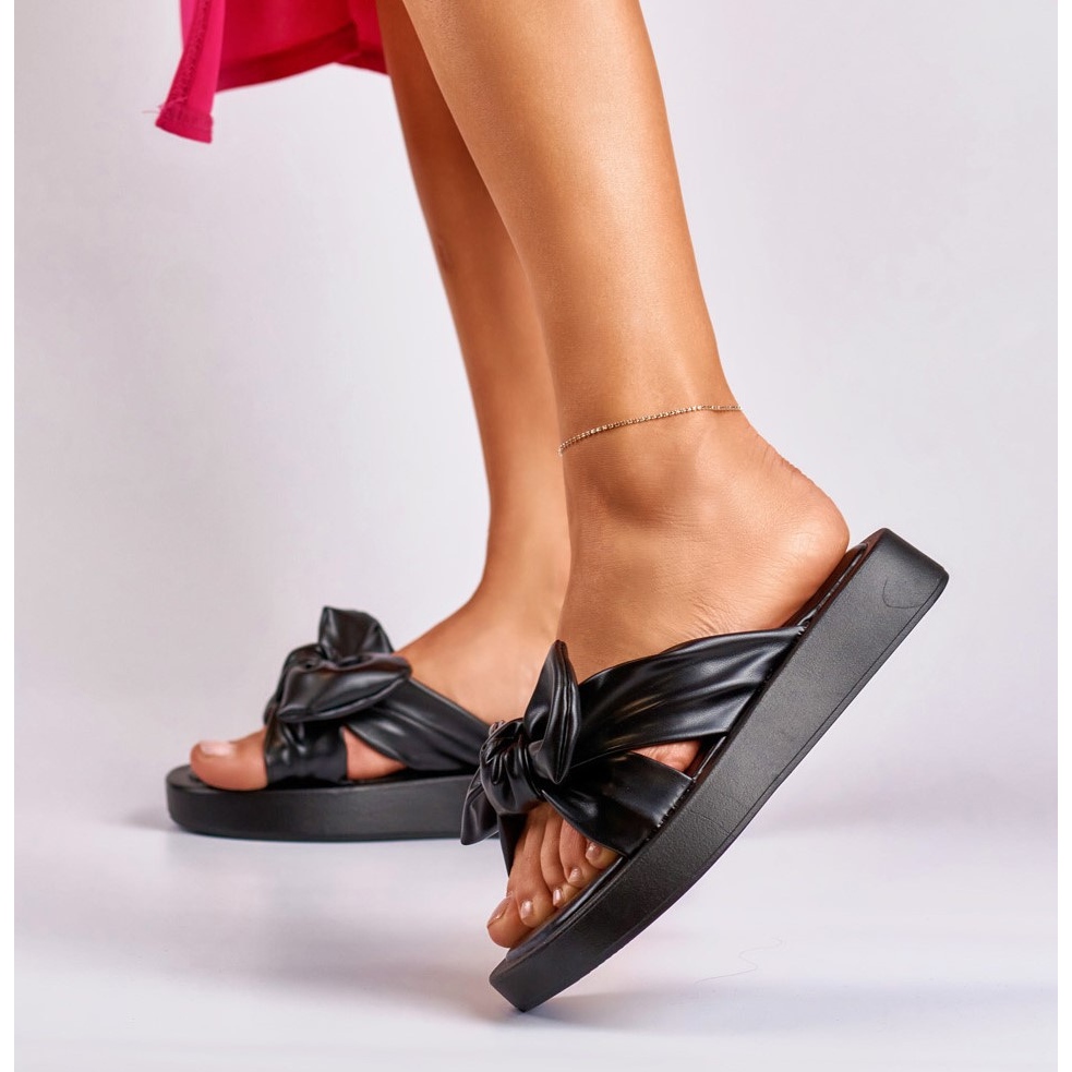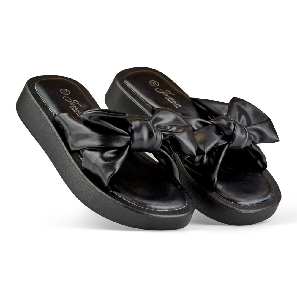 Detalles: Babuchas negras de mujer fabricadas en ecopiel negro
