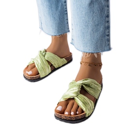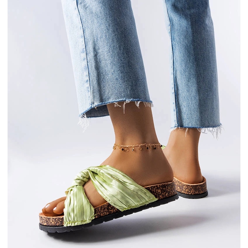 Chanclas verdes en la plataforma decoradas con material de Fresne - estilo y comodidad para el verano