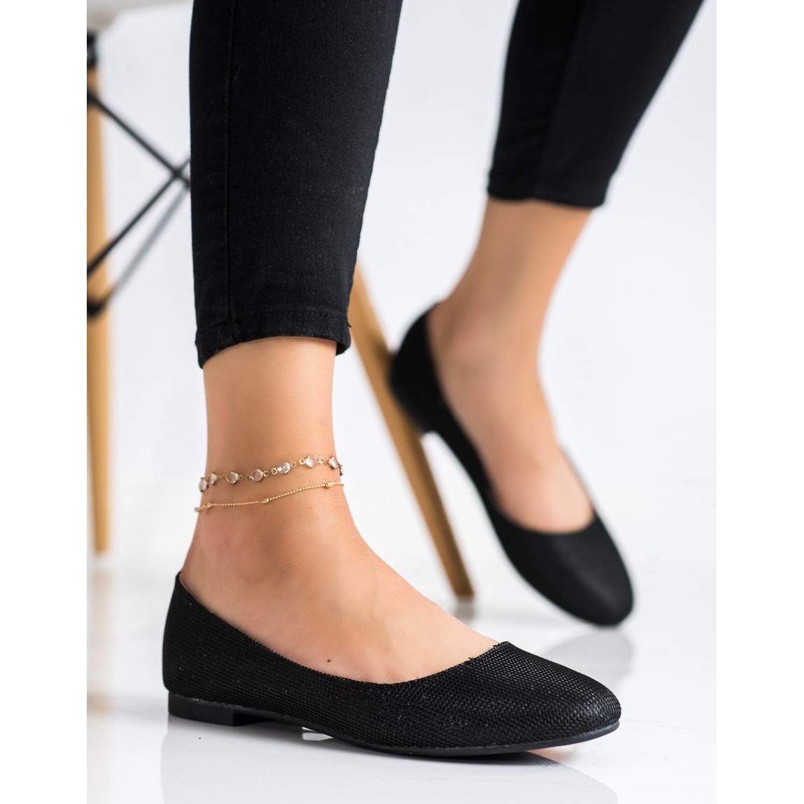 Descubre la elegancia y la comodidad en el día a día gracias a las clásicas bailarinas con purpurina de Super Mode. Estas bailarinas negras combinan un estilo atemporal con toques modernos, combinando perfectamente con las tendencias primavera-verano.