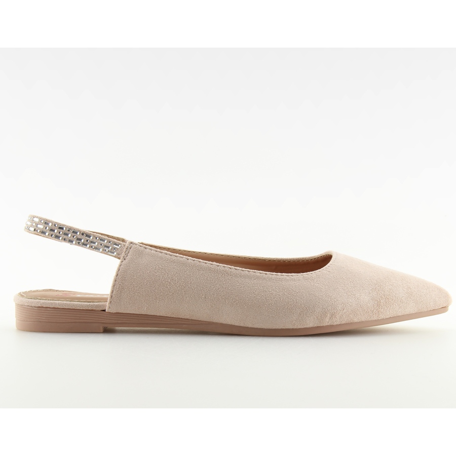 Bailarinas torneadas y femeninas con tacón abierto, perfectas para el verano. Una sutil raya en la parte posterior decorada con delicadas piedras añade elegancia, y el polvo brillante del ante ecológico brilla maravillosamente bajo el sol. Perfecto tanto para el día a día, estilo casual como para ocasiones especiales.