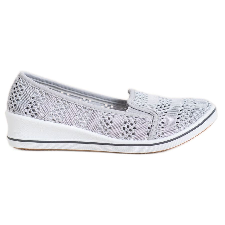 Descubre la elegancia en el día a día con las bailarinas SHELOVET en gris. Estos elegantes zapatos de mujer combinan un look deportivo con comodidad, combinando perfectamente con el estilo casual. Confeccionadas con tejido de alta calidad, las bailarinas tienen un patrón calado único con rayas horizontales, que aporta ligereza y originalidad.