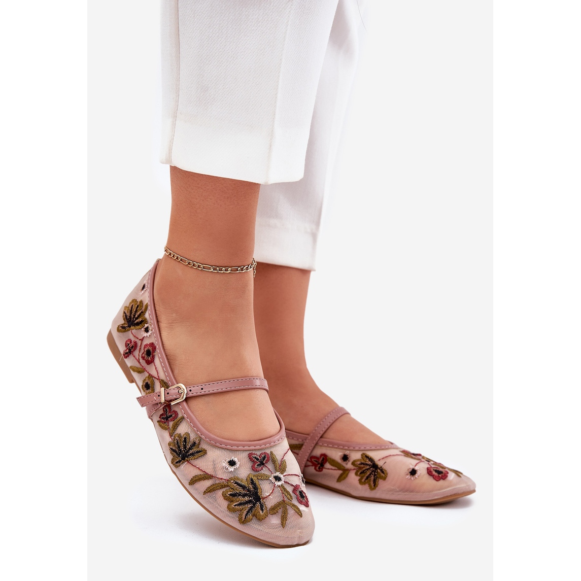 Descubra el encanto de las bailarinas con bordados y una franja en un tono rosado, que combina perfectamente la elegancia con la comodidad diaria. Su bordado floral agrega un personaje único, lo que hace que cada estilización gane un acento elegante.