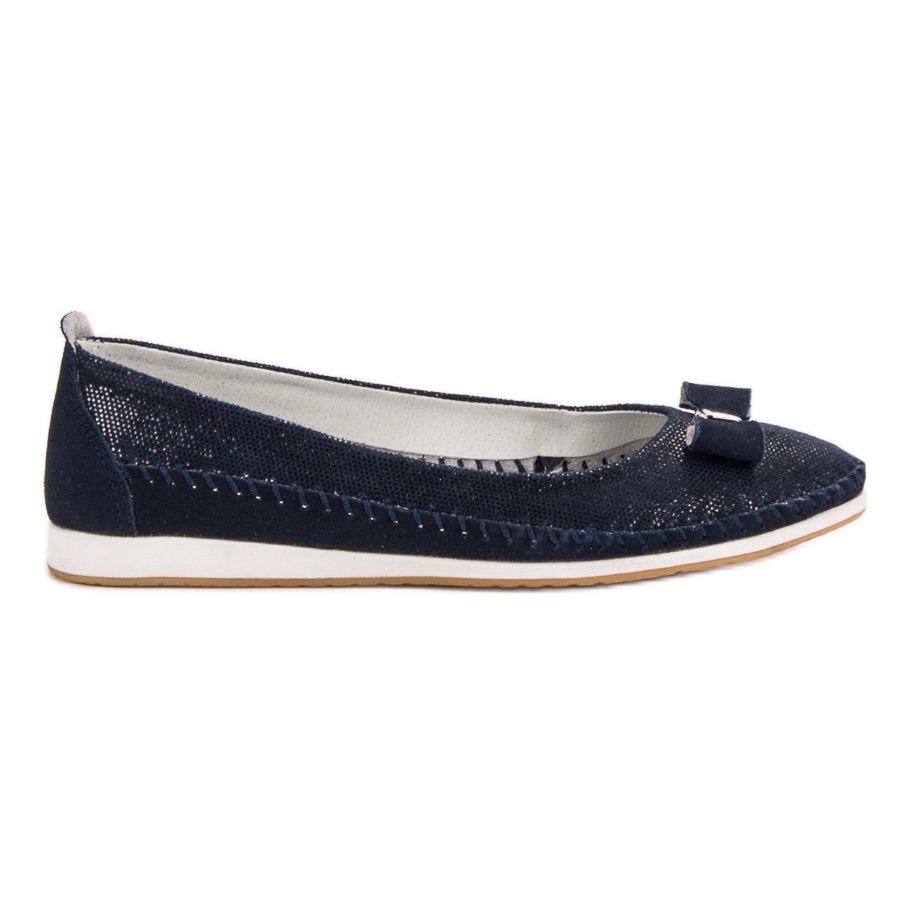 Las bailarinas VINCEZA con lazo en azul marino son una opción extremadamente elegante para toda mujer que aprecia la elegancia en el estilo cotidiano. Su diseño clásico y moderno se distingue por un sutil lazo que aporta encanto y feminidad. Fabricadas en piel natural de alta calidad, tanto por fuera como por dentro, estas bailarinas garantizan comodidad durante todo el día.