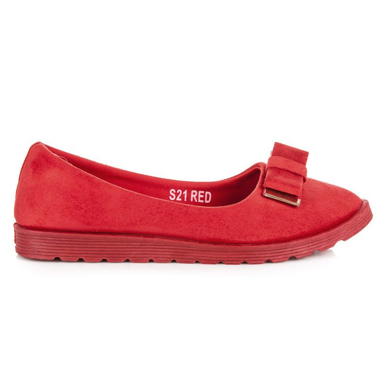 Esta es la elección perfecta para toda mujer que quiera añadir un toque de elegancia a su conjunto diario. Las bailarinas de ante rojo con lazo son un clásico que nunca pasa de moda. Hechos de gamuza ecológica de alta calidad, no solo brindan una apariencia elegante, sino también comodidad de uso durante todo el día.