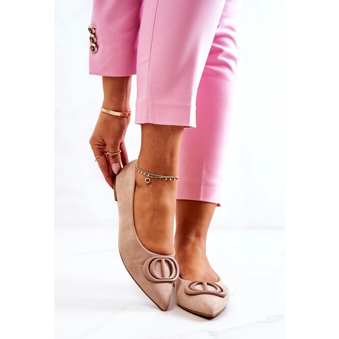 Elegantes bailarinas con un elemento decorativo de plástico. Los zapatos están hechos completamente de ante de cuero ecológico. La suave plantilla se encargará de tu comodidad. Punta puntiaguda. Las bailarinas complementarán muchas estilizaciones y serán útiles en muchas ocasiones. Asegúrese de ver toda nuestra colección de bailarinas. Al elegir una talla, utilice la tabla de tallas.