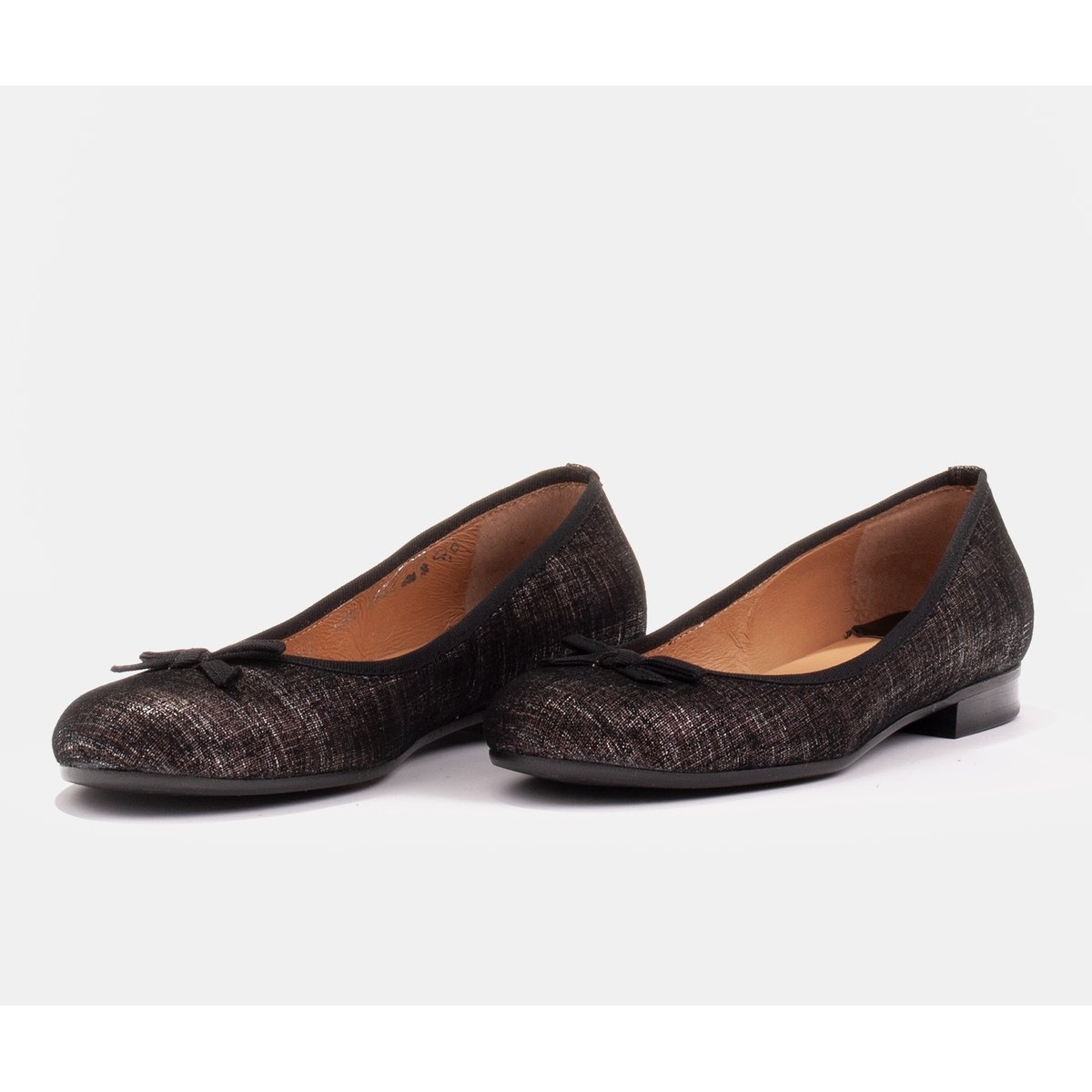 Marco Shoes presenta unas bailarinas de mujer elegantes y cómodas, perfectas para toda mujer que valora el estilo clásico y los materiales de alta calidad. Este par en particular, confeccionado en ante natural de alta calidad, atrae la atención por su color negro intenso, que garantiza versatilidad y facilidad de combinación con una variedad de estilos.