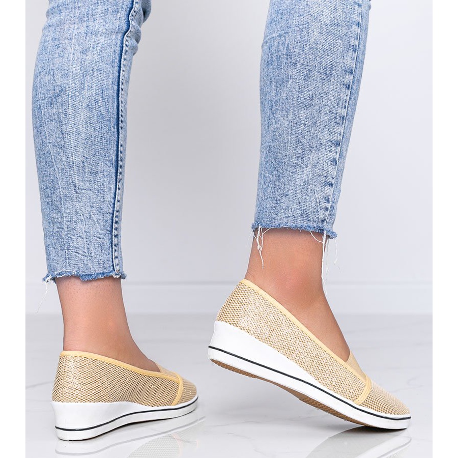 Detalles: Bailarinas doradas brillantes en la cuña Glam Star dorado