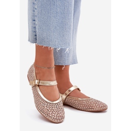 Las bailarinas femeninas decoradas con cinturón y una hebilla en color dorado es una propuesta ideal para las mujeres que valoran la elegancia y la comodidad. Su diseño sutil con una nariz redondeada les da delicadeza, y además un cinturón con una hebilla en la mitad del pie no solo proporciona un ajuste perfecto, sino que también se convierte en un acento decorativo efectivo.