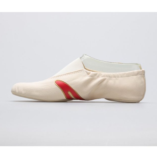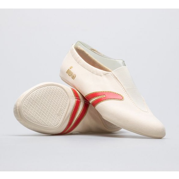 Las bailarinas IWA 502 son un modelo de culto del calzado de gimnasia IWA GIMNASTICS. Están fabricados con un resistente material de terciopelo (microfibra), lo que garantiza su alta calidad y durabilidad. Los colores de las bailarinas son beige cremoso, rayas rojas y detalles dorados. El logo de la marca confirma la autenticidad y excelente calidad de estos zapatos. Están disponibles en una amplia gama de tallas (de la 31 a la 47), lo que las hace adecuadas tanto para niños como para adultos.