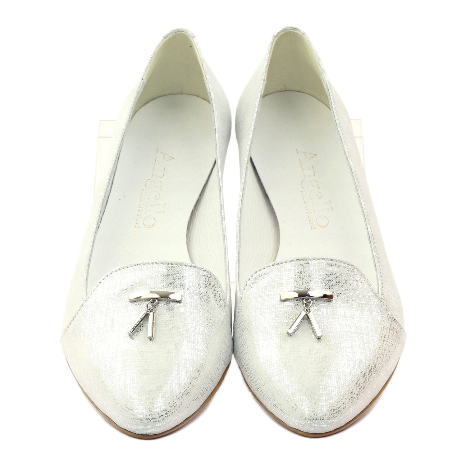 Te presentamos las bailarinas Lords con decoración plateada de la empresa polaca Angello, modelo wz.162, que deleitan por su estilo único y comodidad de uso. Estos elegantes zapatos están disponibles en el moderno color gris y su acabado de alta calidad en piel natural con un discreto relieve los convierte en la elección perfecta para cualquier ocasión.