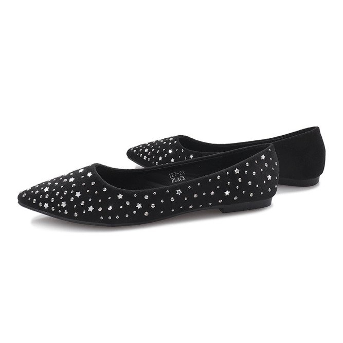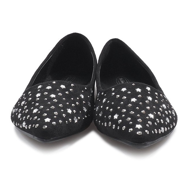 ¡Descubre un estilo y una elegancia inigualables con las bailarinas negras Black Stars! Estos zapatos únicos con punta en punta son la combinación perfecta de estilo clásico y detalles de moda. Decorados con llamativos pedrería y un motivo de estrella, complementarán fácilmente cualquier estilismo, tanto cotidiano como elegante para ocasiones especiales.