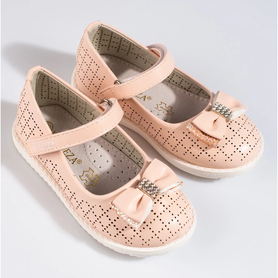 Ballerinas Vinceza delicadas y elegantes, ideales para una pequeña dama todos los días y para ocasiones especiales. El acabado Openwork agrega ligereza y proporciona ventilación, y el rosa en polvo le da al aspecto femenino una elegancia sutil.