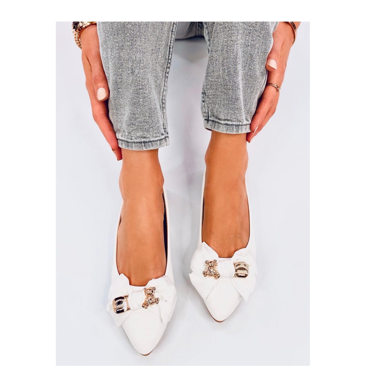 Descubra la extraordinaria elegancia y comodidad en las bailarinas con un oso blanco blanco, ideal para todas las mujeres que desean combinar el estilo con comodidad. Estos ballerinas bien formados se deleitan con su diseño minimalista, complementado con un hermoso arco de satén, decorado con un alfiler de seguridad dorado y un oso encantador, detalles que les dan un personaje único.