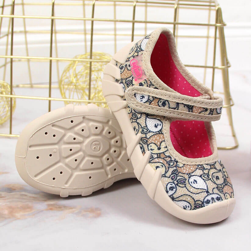 Detalles: Bailarinas para niña con velcro beige en zorros de Befado
