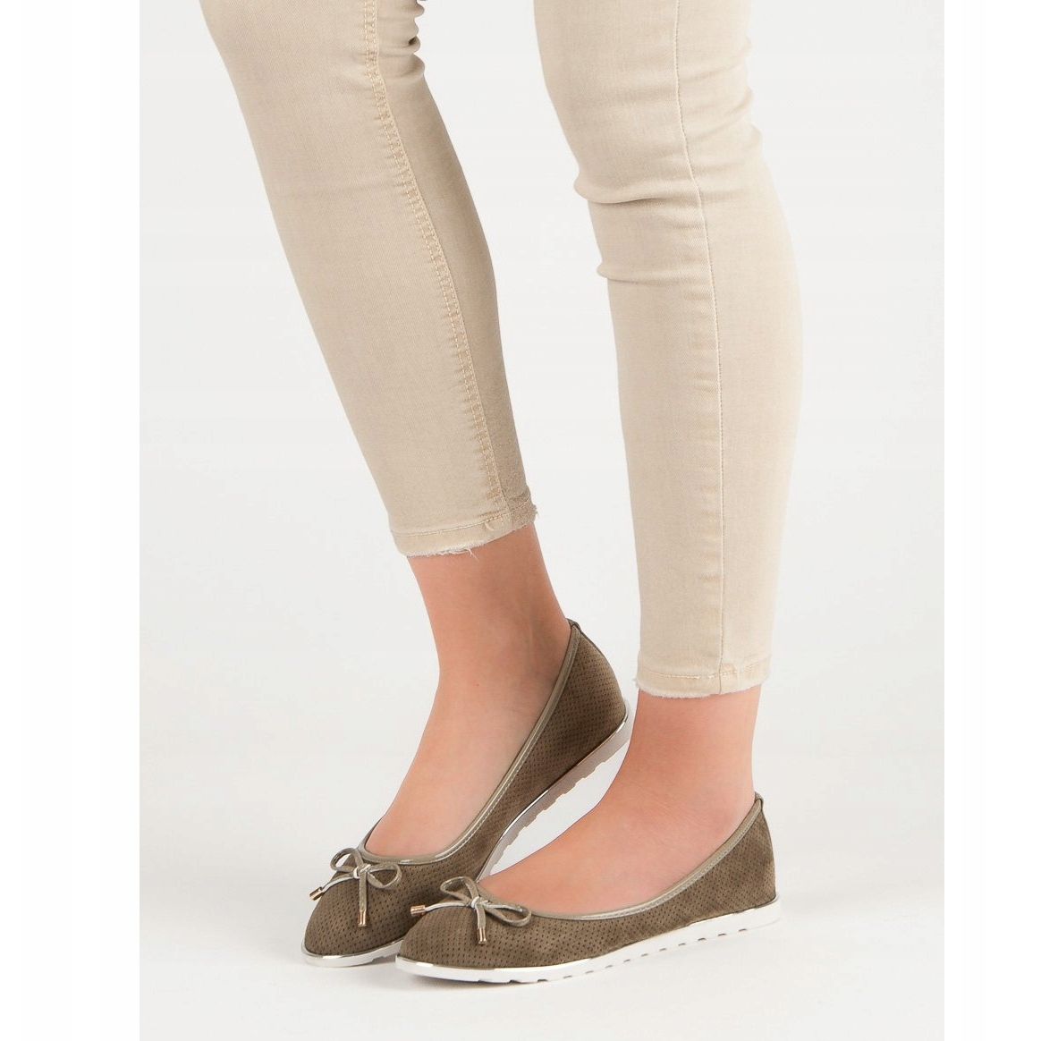 Las bailarinas se caracterizan por una suela blanca antideslizante que te permitirá moverte libremente tanto en la jungla urbana como durante los paseos de fin de semana. La punta sorprendentemente encantadora decorada con un elegante lazo verde con detalles dorados les da un carácter único, perfecto para un estilo casual.