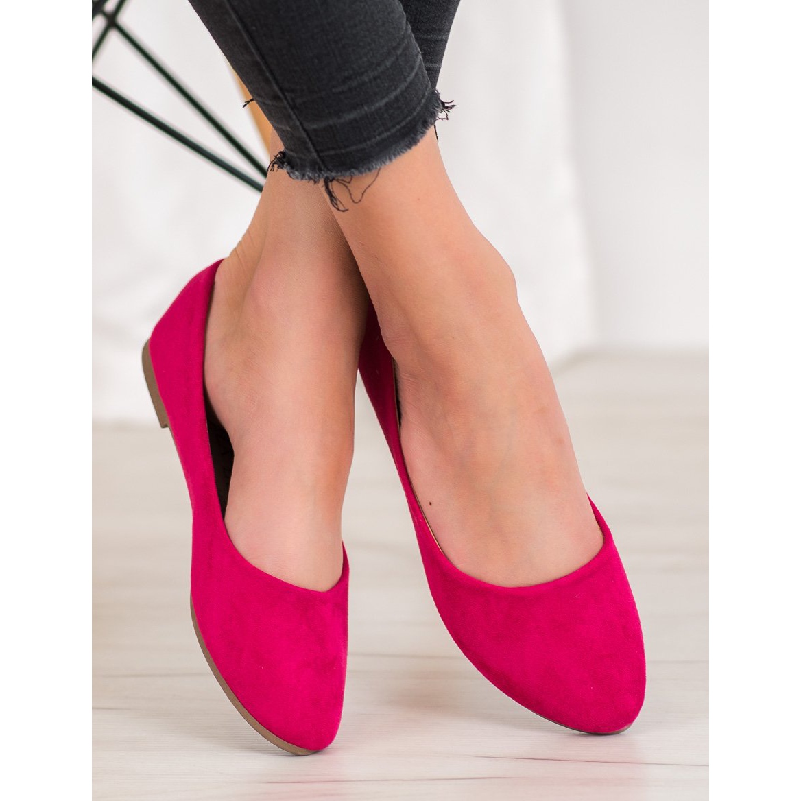 Te presentamos las clásicas bailarinas VINCEZA de ante en un moderno color rosa, que son la elección perfecta para las mujeres que buscan comodidad y estilo para el día a día y para ocasiones especiales. Estos elegantes zapatos combinan estilo casual y clásico, haciéndolos perfectos para una variedad de ocasiones.