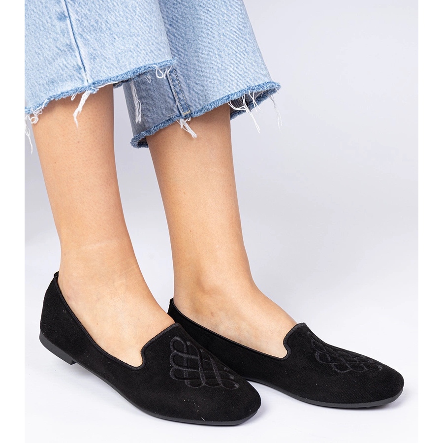 Hecho de ecozamz de alta calidad, las bailarinas se caracterizan no solo por la estética, sino también por un enfoque ecológico de la moda. El acabado negro los hace extremadamente versátiles, y el bordado sutil les da un personaje único, que los distingue de otros modelos del mercado. Gracias a esto, puedes sentirte especial en cada situación.