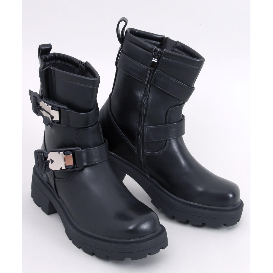 Las elegantes botas para mujeres de Beaus Black combinan un personaje militar con comodidad diaria. Hecho de cuero ecológico (cara) con forro de espuma, con aislamiento práctico y sujetos con una cremallera colocada en la parte superior de la parte superior. Las hebillas decorativas agregan una roca, un salio militar y una nariz redonda y un talón estable como un bloque (altura 5 cm) aseguran la comodidad del uso.
