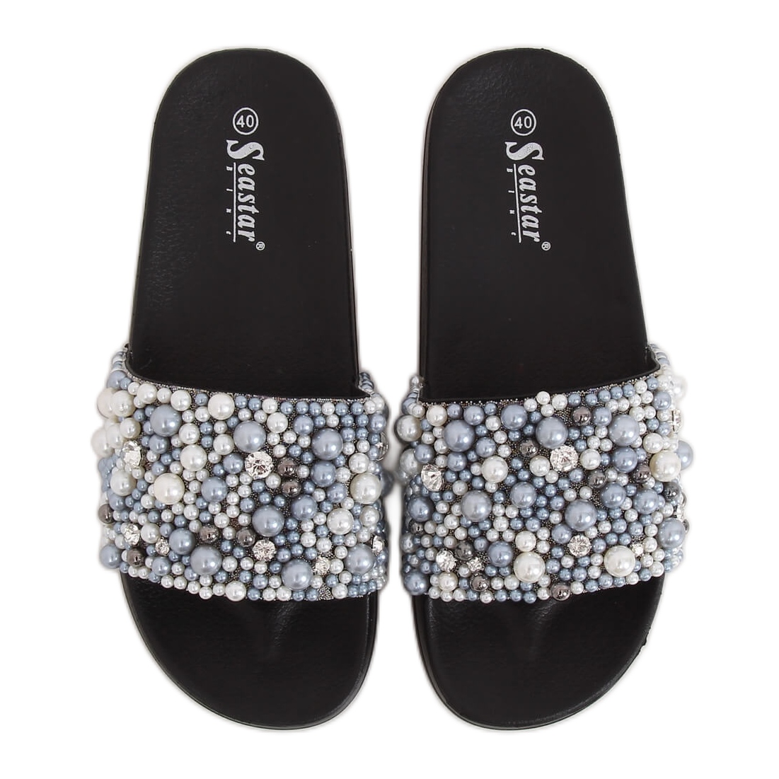 Detalles: Black BG66 Pantuflas negras con perlas negro