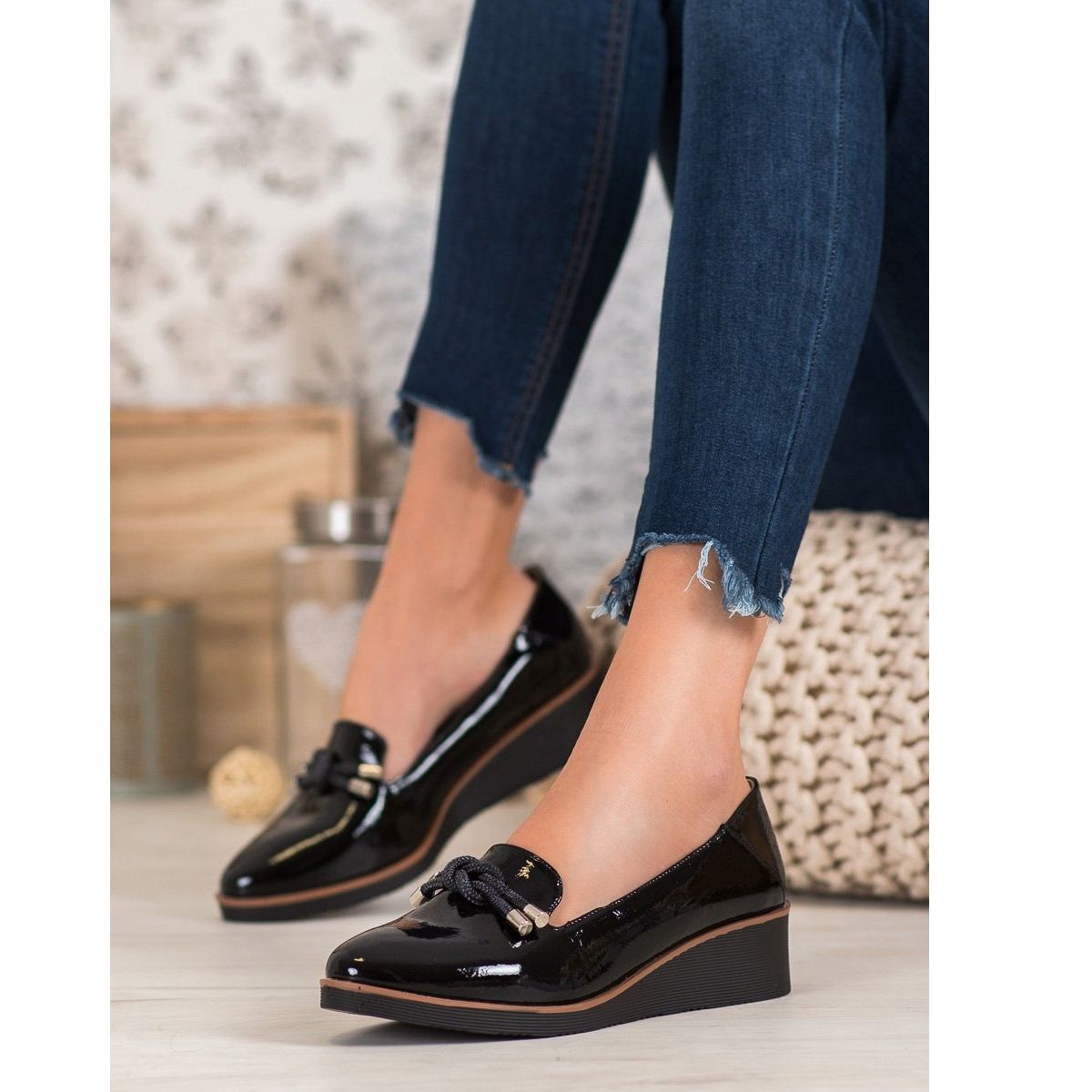 Las Cuñas Black Lords VINCEZA son la elección perfecta para las mujeres que buscan una combinación de elegancia y comodidad para el día a día. Fabricados con materiales de alta calidad, estos elegantes zapatos cuentan con una superficie lacada que refleja maravillosamente la luz, dando a cualquier conjunto un carácter lujoso.