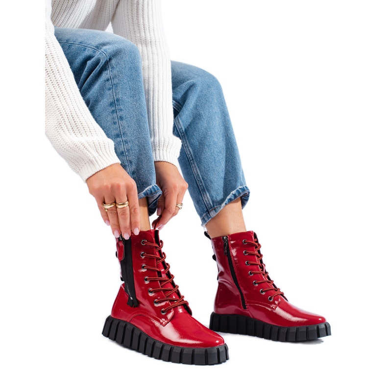 Descubra plataformas rojas únicas del fabricante W. Potocki que combinan perfectamente con las tendencias actuales. Estos botines de mujer combinan estilo casual y rock, perfectos para la temporada otoño/invierno. Fabricados en charol ecológico de alta calidad, ofrecen no sólo una apariencia atractiva, sino también comodidad de uso.