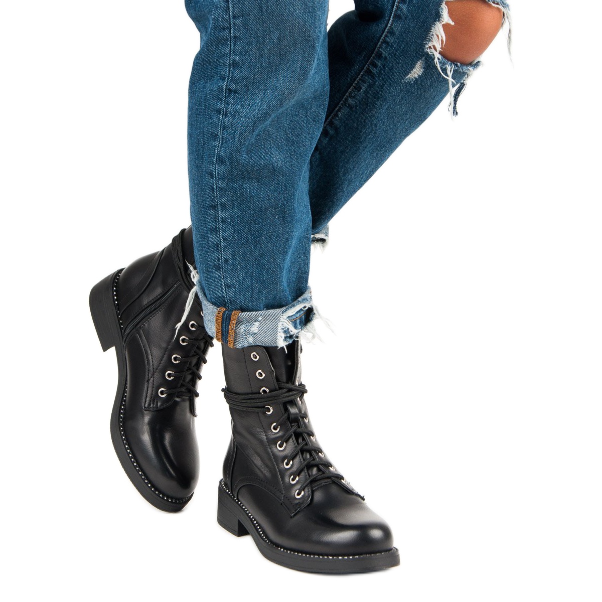 Los trabajadores con cordones Black Super Me no solo son una combinación de funcionalidad y diseño de moda, sino también con adornos de diamantes de imitación que les añaden carácter. Perfecto para mujeres que valoran el estilo y la comodidad.