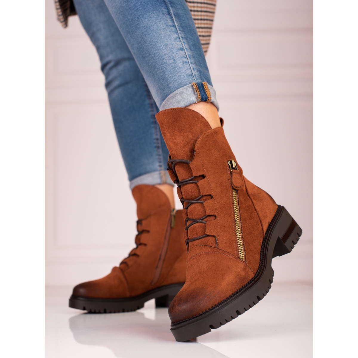 Sumérgete en el mundo de la comodidad y el estilo gracias a las botas de trabajo de ante para mujer Potocki. Estos zapatos extremadamente de moda son una combinación de estilo casual y rock, perfectos para el estilo diario. Confeccionados en ante ecológico marrón, los trabajadores de W. Potocki destacan no sólo por su estética, sino también por su practicidad.