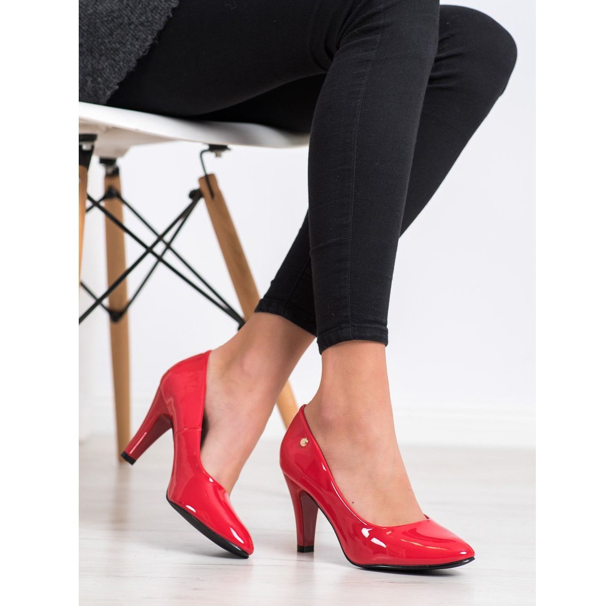 Los zapatos de salón tienen un tacón de 8,5 centímetros en forma de poste, lo que garantiza estabilidad y comodidad al usarlos. Fabricados en piel sintética de alta calidad, tienen un aspecto extremadamente elegante gracias a la superficie lacada, que les confiere un brillo único.