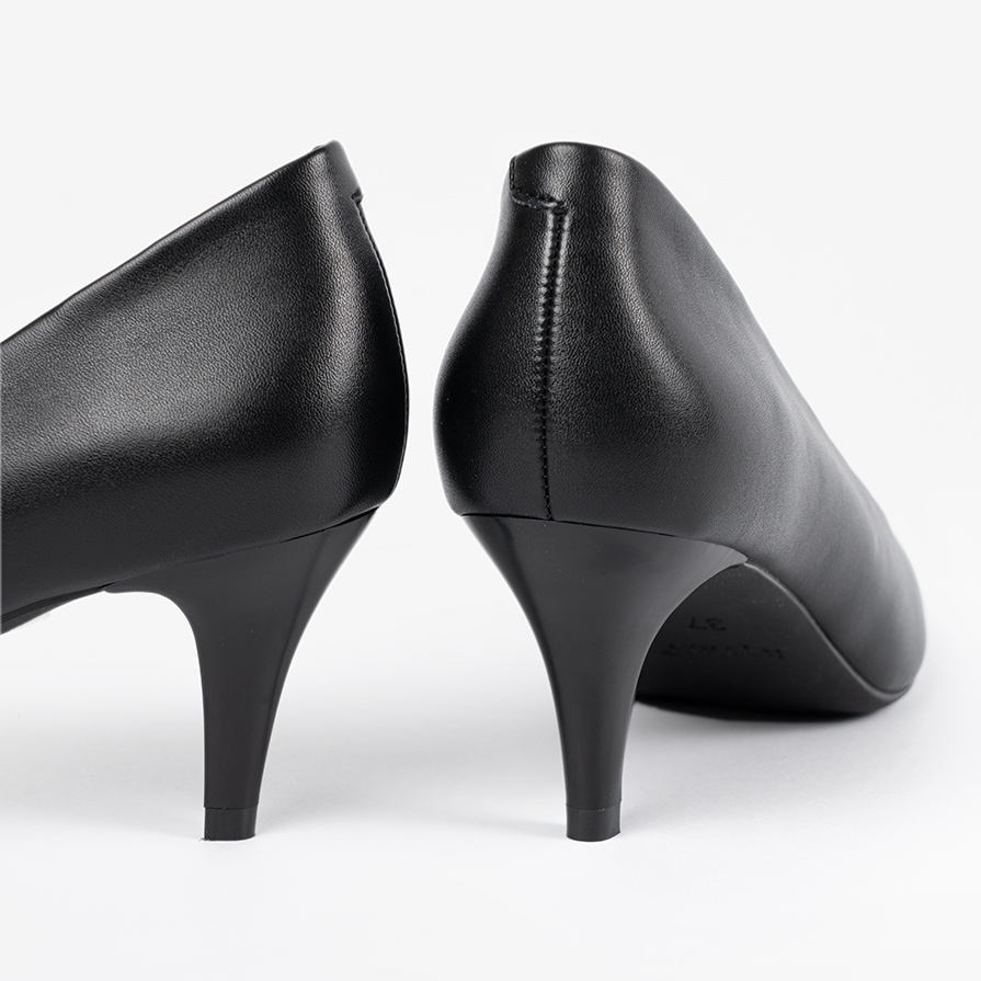Las bombas se caracterizan por una nariz redonda que proporciona comodidad. Construido en el talón y un elegante estilo de agregado de pasador de 6.5 cm de alto, lo que los hace perfectos a diario y para ocasiones especiales. Los colores negros clásicos componen una estilización diferente, lo que los convierte en una elección universal.
