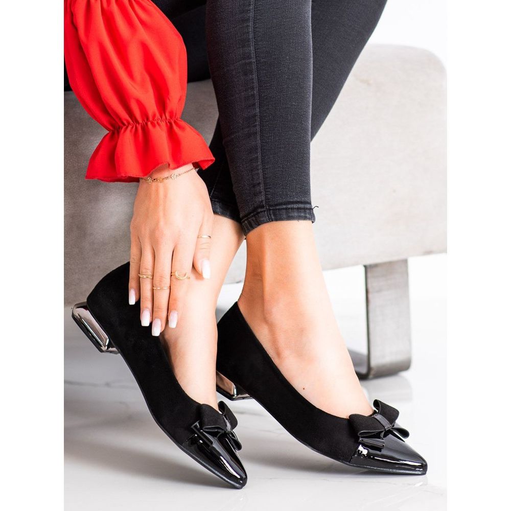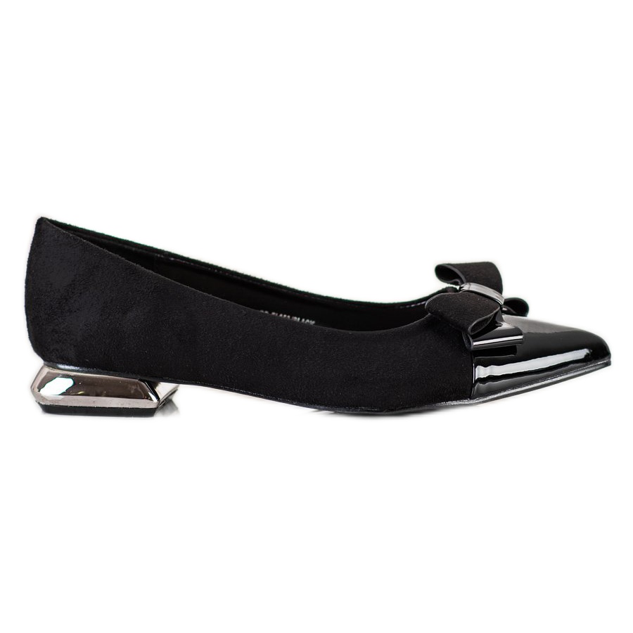 Estos zapatos de salón se caracterizan por un tacón suave y reforzado y una suela lisa de material sintético, que garantiza comodidad al usarlos. La altura del tacón plano es de 2 cm, lo que los convierte en un calzado agradable para los pies y al mismo tiempo extremadamente elegante. La punta de estos zapatos de salón es redonda, lo que aporta sutileza y feminidad.