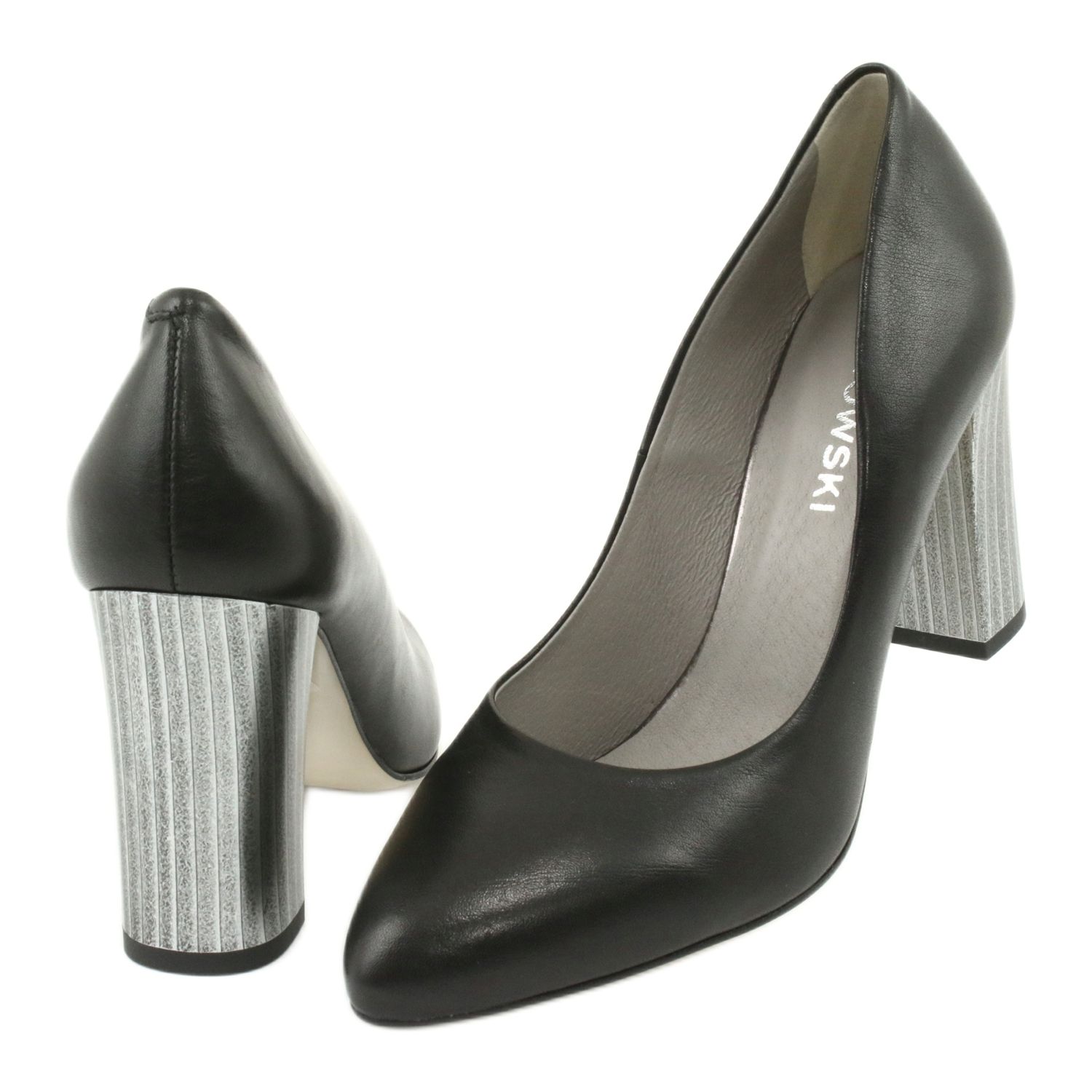 Kaniowski 4277 - Bombas de cuero elegantes en un poste decorativo de plata