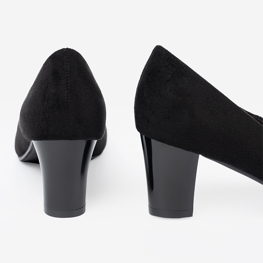 La altura del talón de 6 cm, en un poste estable, hace que las bombas sean una excelente opción para estilizaciones cotidianas e informales, así como conjuntos más formales y elegantes. Gracias a la inserción, ponerse y quitar los zapatos es rápido y cómodo.