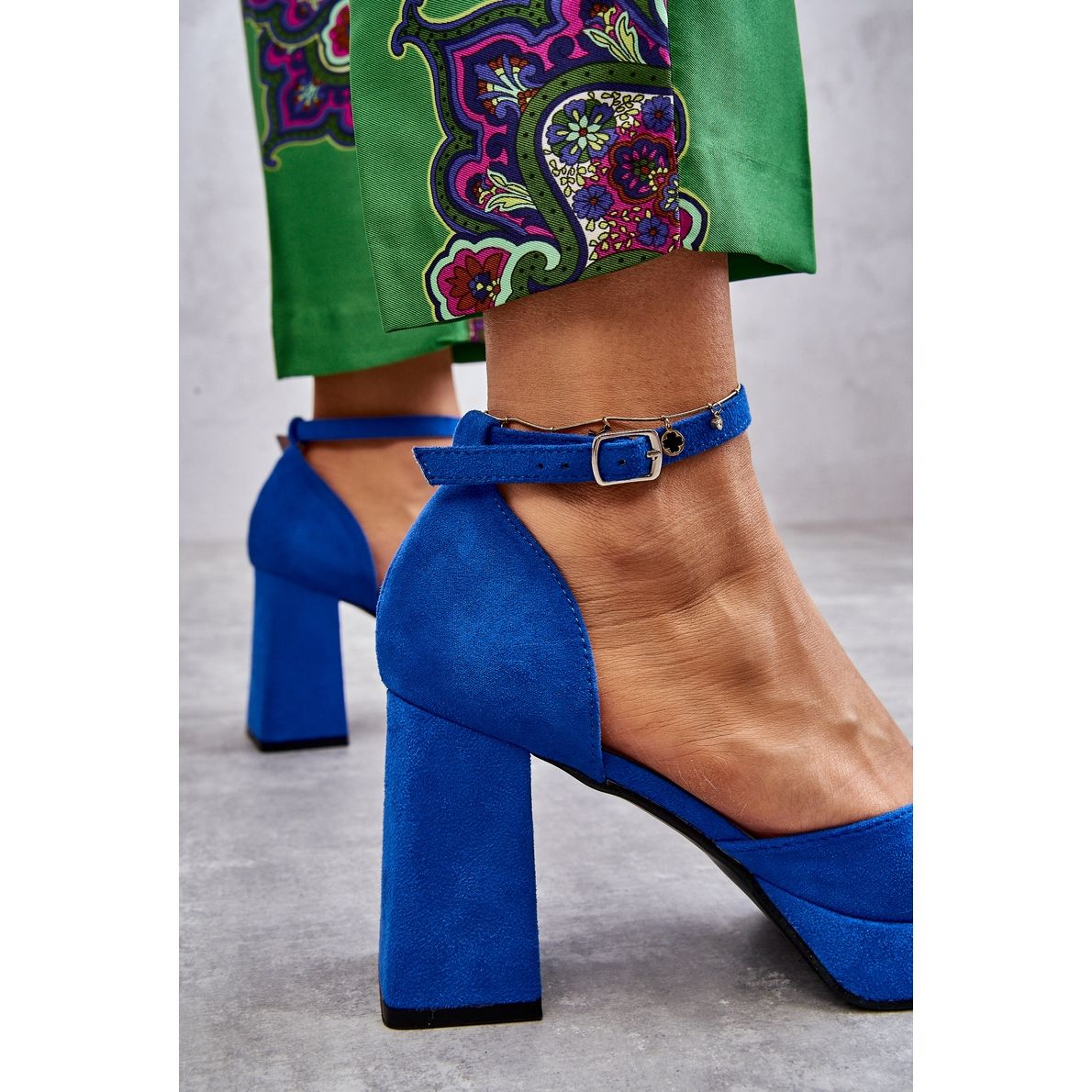 Los zapatos de salón están montados sobre un tacón de bloque macizo y estable, de 9 cm de altura, que garantiza comodidad y confianza en tu paso. Además, una delicada plataforma de 2 cm de altura hace que llevarlos sea un placer durante todo el día. Una correa ajustable con hebilla permite un ajuste perfecto al pie, y el talón rígido y la punta cuadrada añaden elegancia y enfatizan el carácter moderno de estos zapatos.