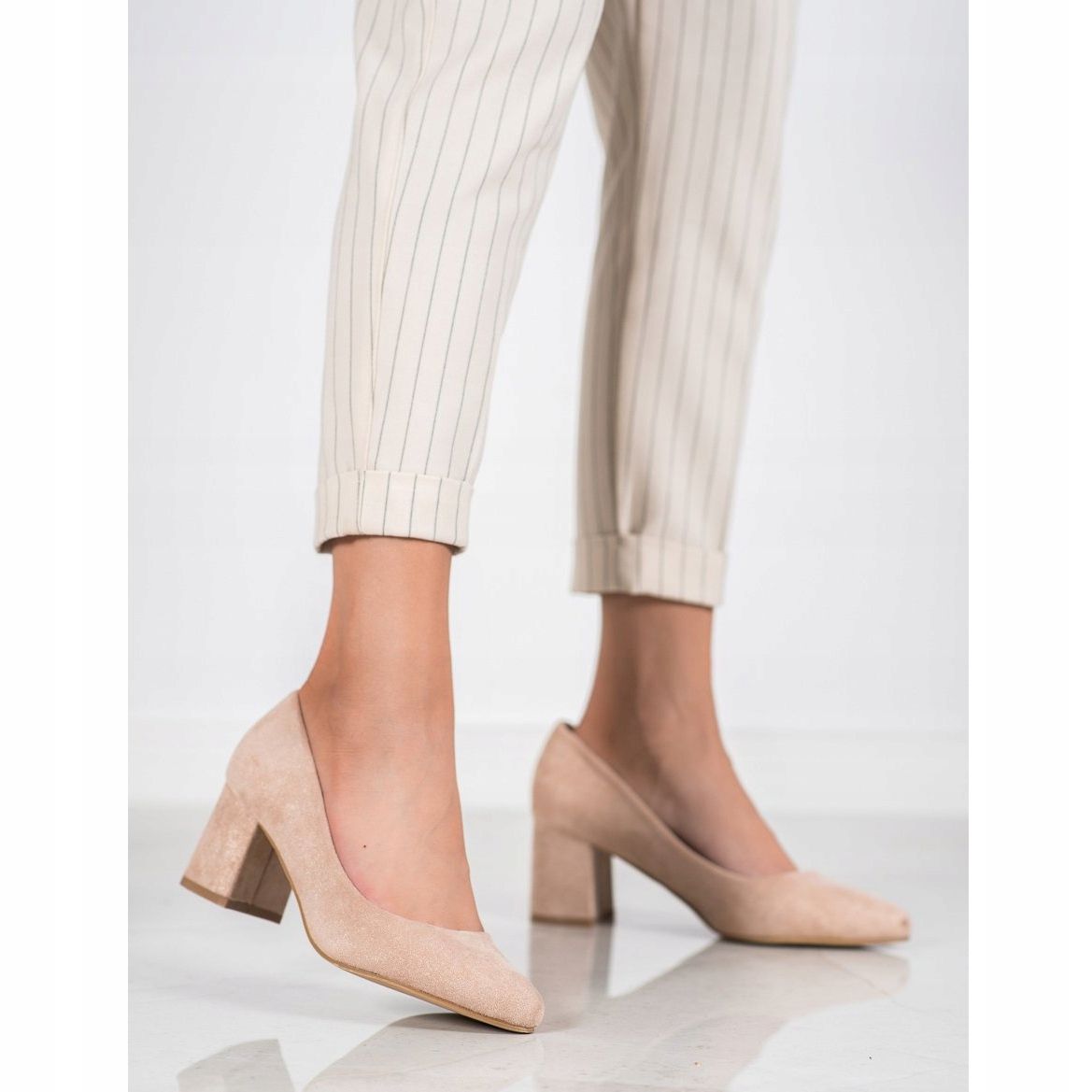 Los zapatos de salón están equipados con un tacón de bloque ancho y estable de 6 cm de altura, que garantiza comodidad incluso durante todo el día. Fabricadas con materiales de primera calidad, con inserciones de piel ecológica, aseguran comodidad y una adecuada ventilación. La suela sintética lisa hace que los zapatos no sólo sean elegantes, sino también funcionales.